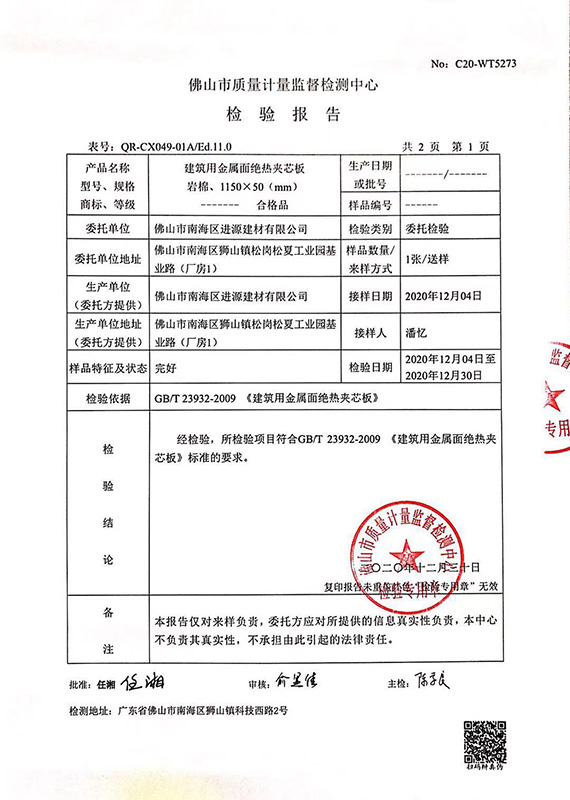 2021年最新岩棉板检验报告